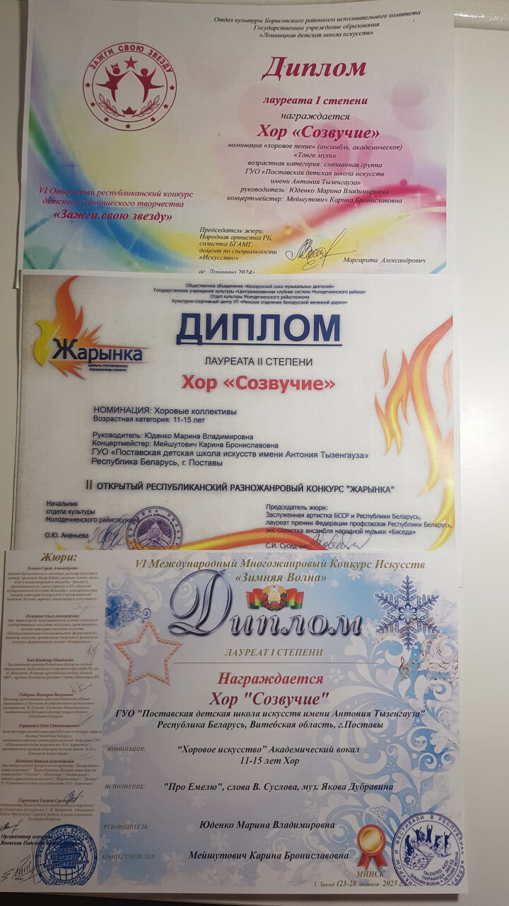 Диплом лауреата 1 степени хор "Созвучие" 2024г. 6 открытый Республиканский конкурс "Зажги свою звезду "