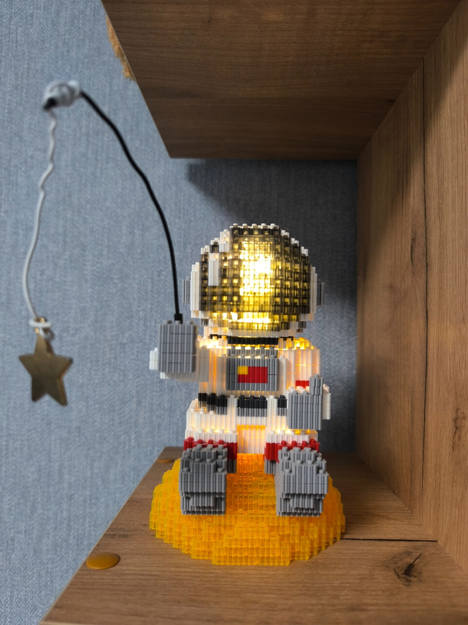 Меня зовут Паша. Я очень люблю проводить время за сборкой конструктора Лего. С каждым разом выбираю фигуры или модели посложнее. На фото одна из последних моих работ - светильник в виде 3d-модели космонавта.