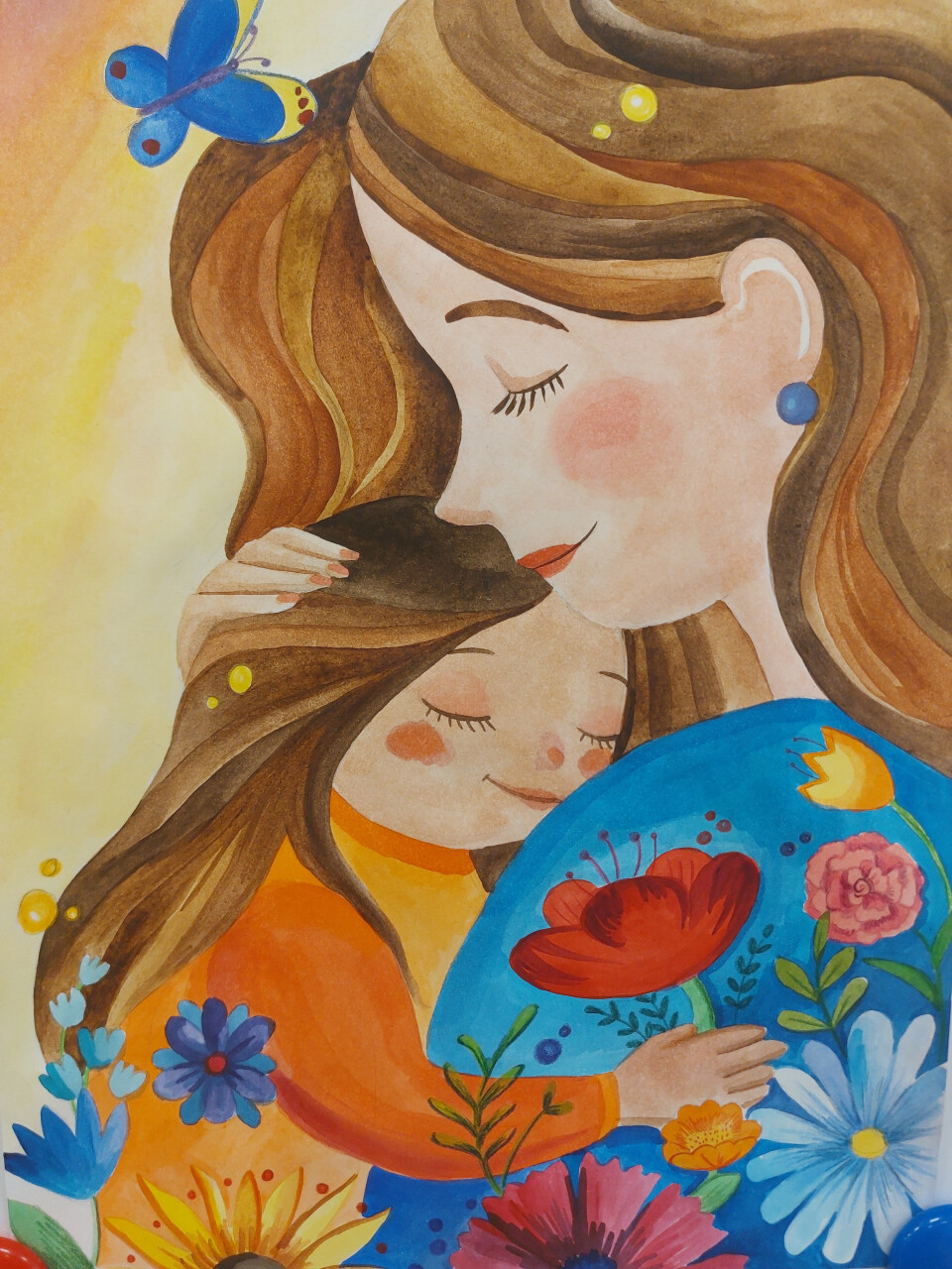 Салаватова Анна, ученица 2 класса МБОУ "Школа развития №24" из города Нефтеюганска ХМАО -Югра представляет на конкурс " Пусть всегда будет мама" рисунок, выполненный в технике акварели и цветных карандашей. Анна увлечена художественным рисованием. Её работы отличаются особенным видением образов и красок. Участие в конкурсе позволило девочке в рисунке раскрыть нежное отношение к своей маме, которая воспитывает девочку одна, стараясь воспитать в дочери самые лучшие качества и навыки.