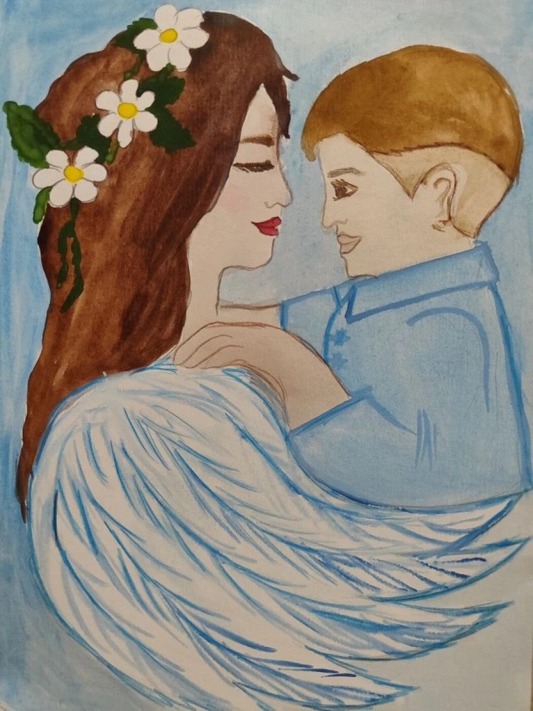 Этим рисунком я хотел выразить ту невероятную силу, которая соединяет меня с мамой. Мама является для меня неиссякаемым источником любви, энергии и безграничной доброты. Только она может дозвониться на разряженный телефон вне зоны действия сети. Только она почувствует момент, когда мне плохо и появится, словно из-под земли. Мама - это человек, который любит меня, несмотря ни на что. Моя мама - это Ангел-хранитель, который согревает мою душу и освещает жизненный путь. Мамочка, когда я крепко стану на ноги, то постараюсь стать твоим ангелом-хранителем.