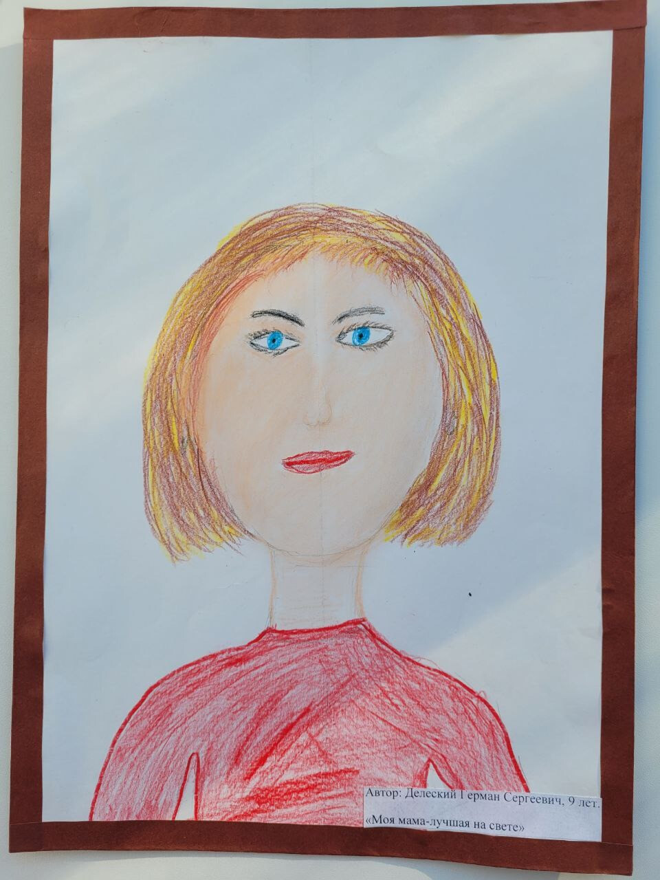На моем рисунке – моя мама. Она стоит в центре, и вокруг нее – яркое, теплое солнце.