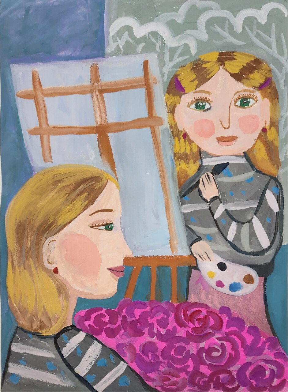На своей работе Ксения изобразила момент, когда она пишет портрет своей мамы