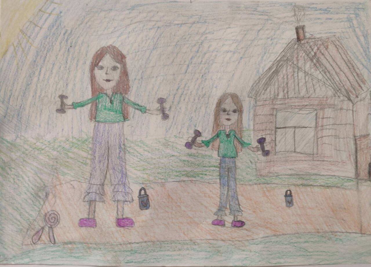 Восьмилетняя Милада Дорожко приняла участие в конкурсе детского рисунка «Пусть всегда будет МАМА...». На своей работе, выполненной цветными карандашами с большой любовью и аккуратностью, Милада изобразила себя вместе с мамой.