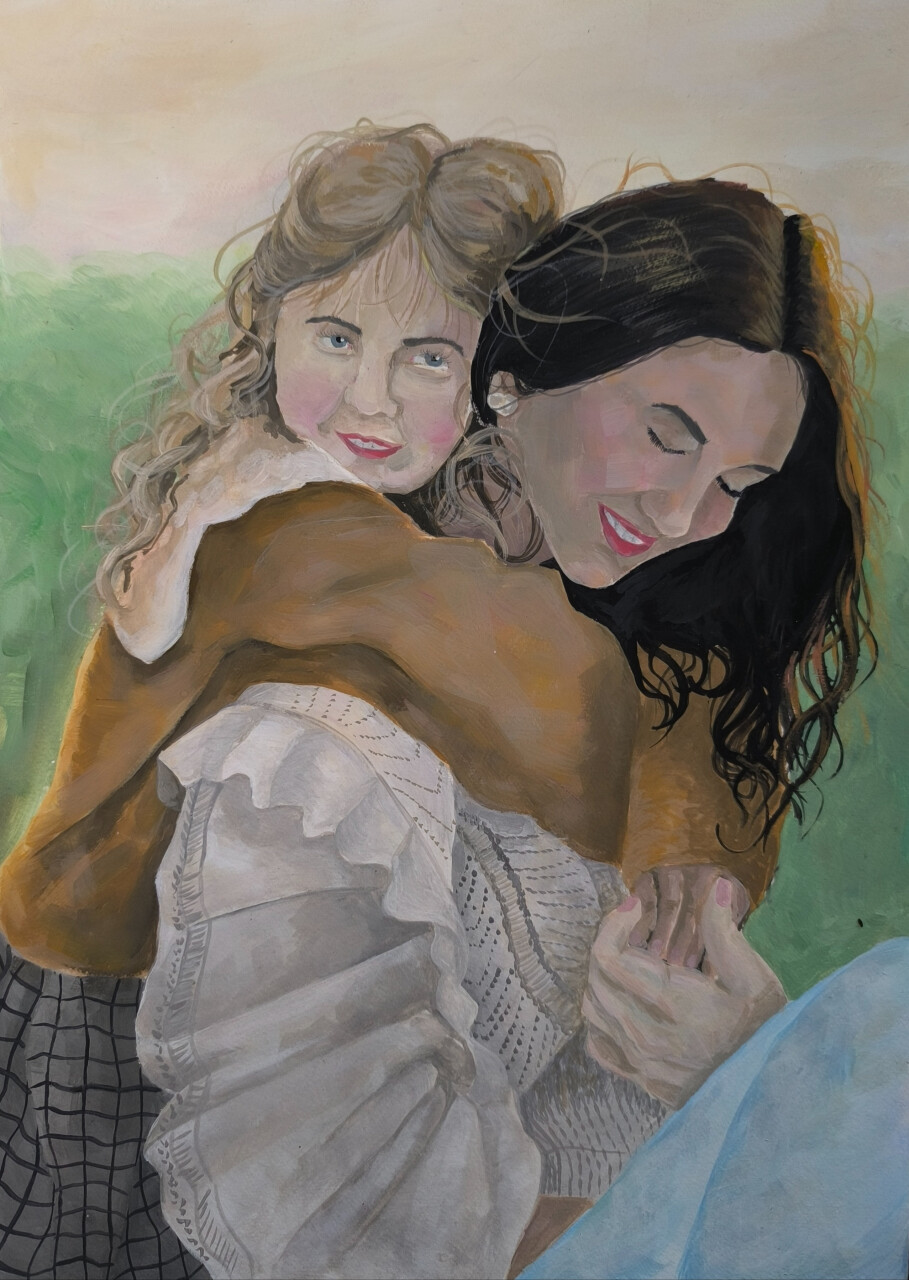 Этот рисунок — о самом безопасном месте на свете. О том, как маленькие ручки, обнимая маму за спину, находят свой единственный и нерушимый оплот. В этом жесте — вся безграничная доверчивость детской любви. А мамина спина, которую она обнимает, — это не просто силуэт. Это символ её силы, её заботы, её бесконечного терпения. Это место, от которого веет таким теплом, что может растопить любую грусть. Тепло её рук, которые могут и кашу сварить, и волосы погладить, и боль заживить, — это главное лекарство в мире.