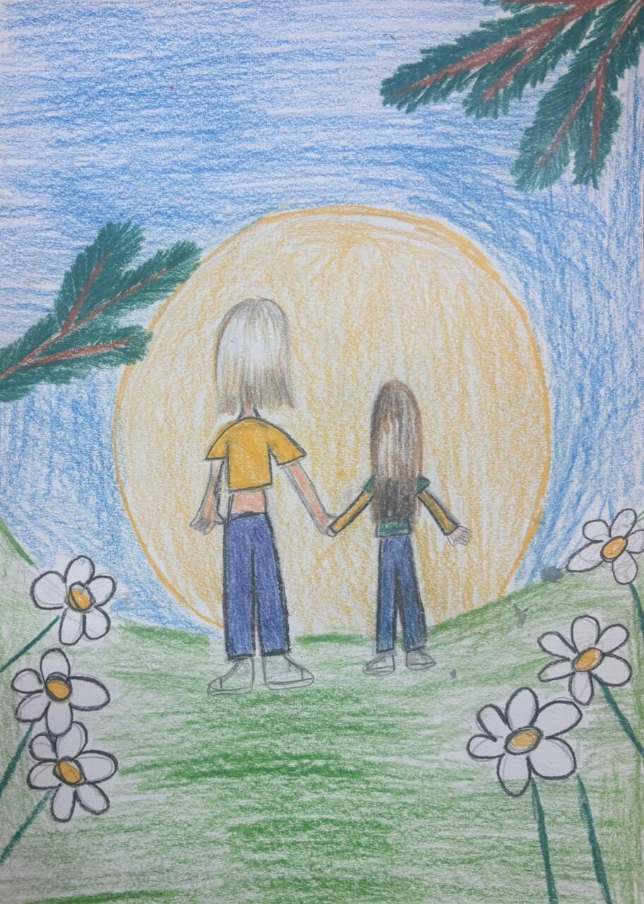 Работа выполнена цветными карандашами