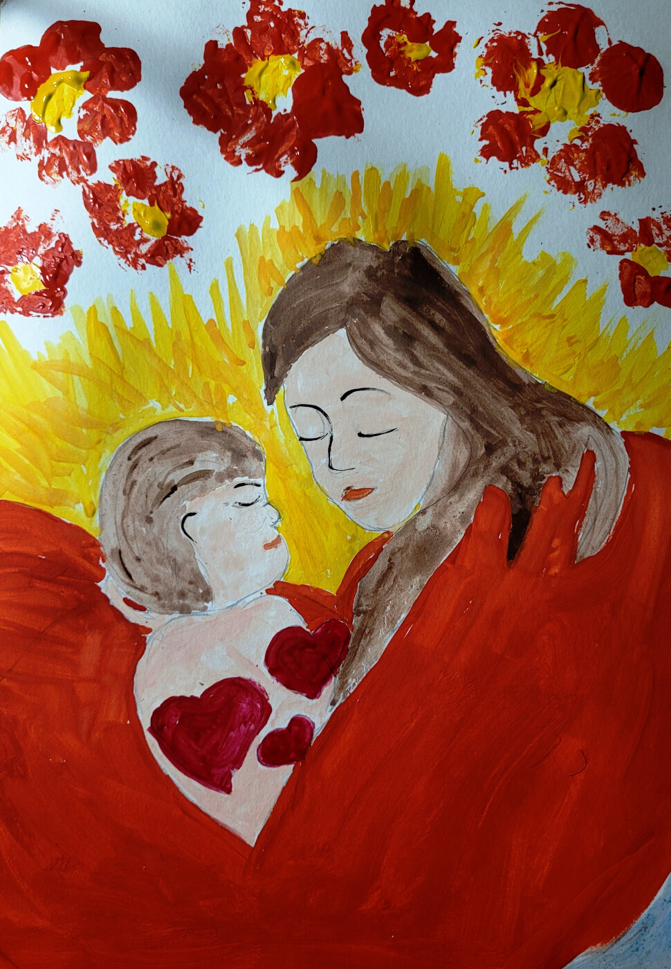 Рисунок называется "Мамино сердце", потому что только мама может любить своих детей безгранично, пламенно, беззаветно.