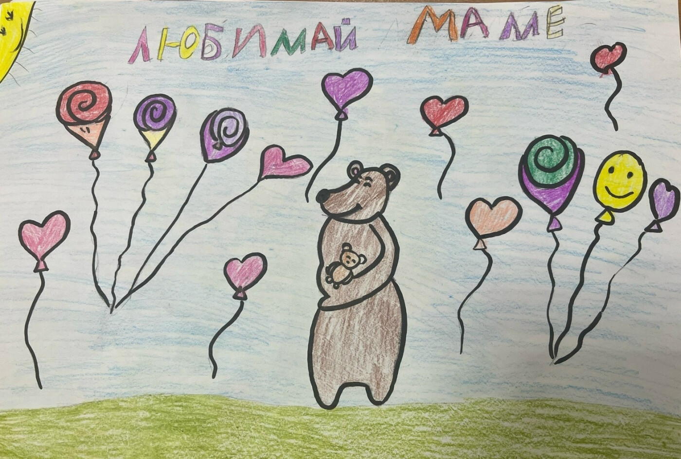 Рисунок цветными карандашами "Любимой маме" в исполнении ученицы 4 класса Коррекционной школы