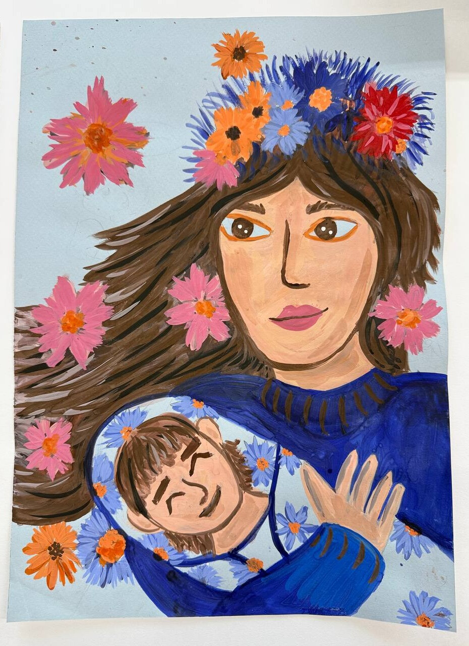 На работе изображена мама с младенцем - символ вечной безграничной любви.