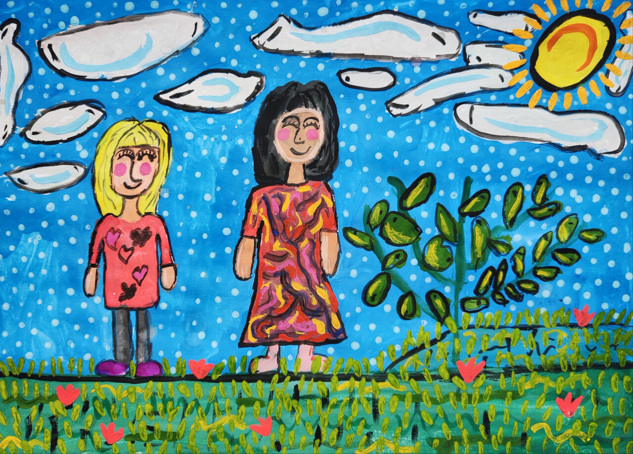 Работа выполнена гуашевыми красками.
