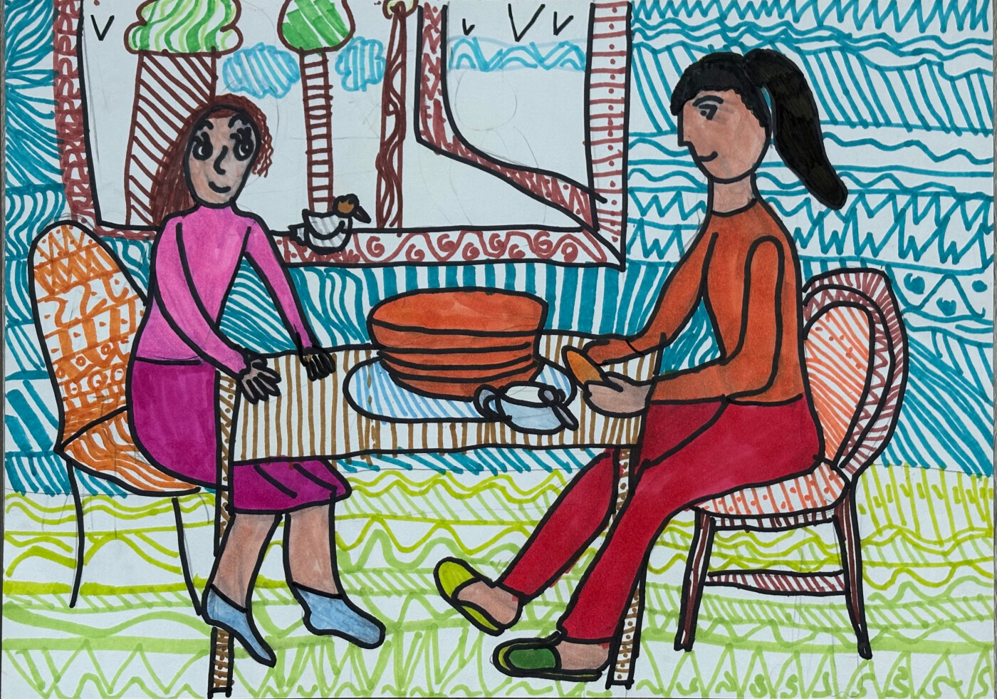 Как хорошо пить чай вместе с мамочкой, со свежеиспечёнными блинчиками и пирожками с клубникой.