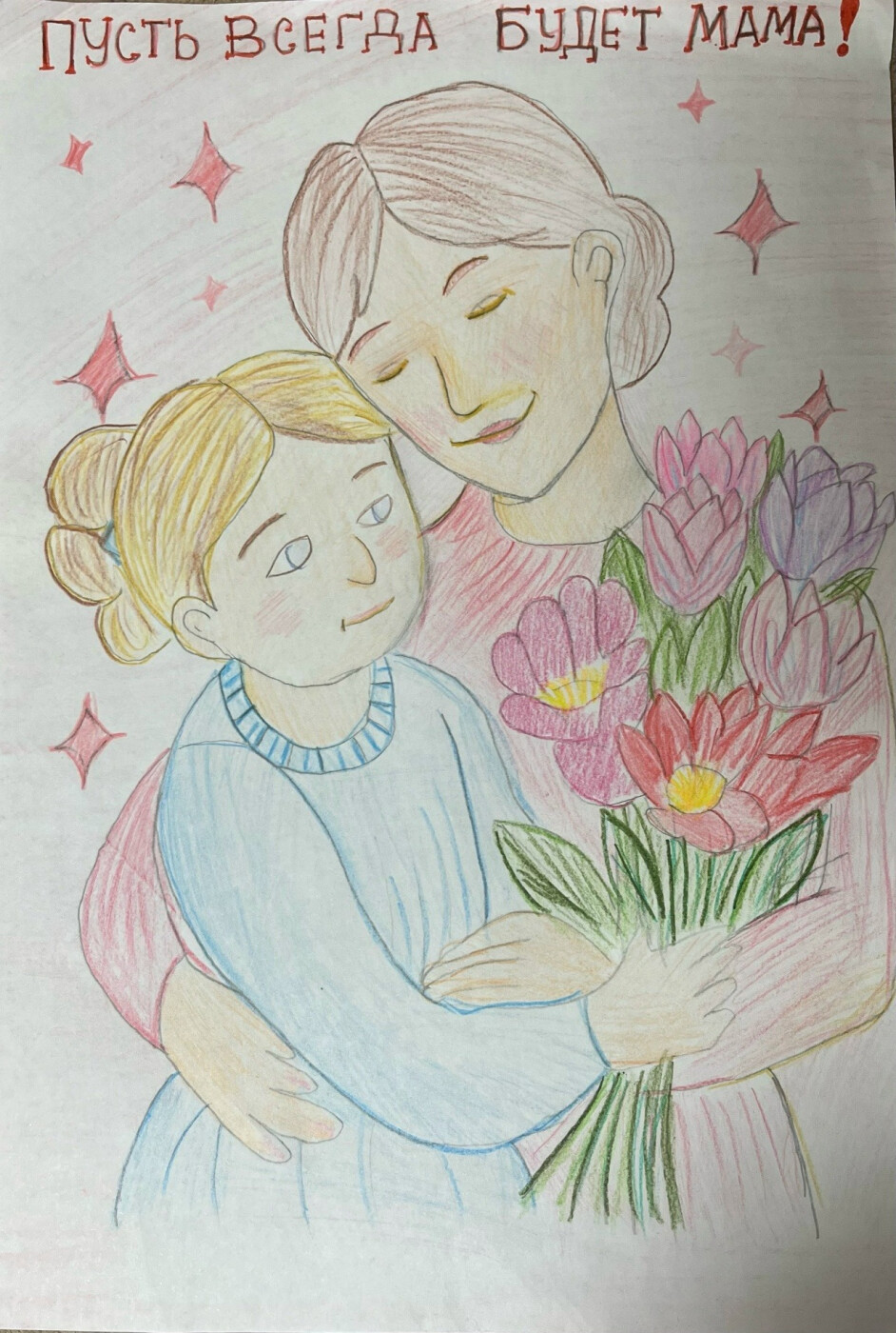 Мама — это самый главный человек в моей жизни. На этом рисунке через букет цветов, я выражаю своей маме любовь и благодарность за то, что она всегда рядом, поддерживает и заботится обо мне.