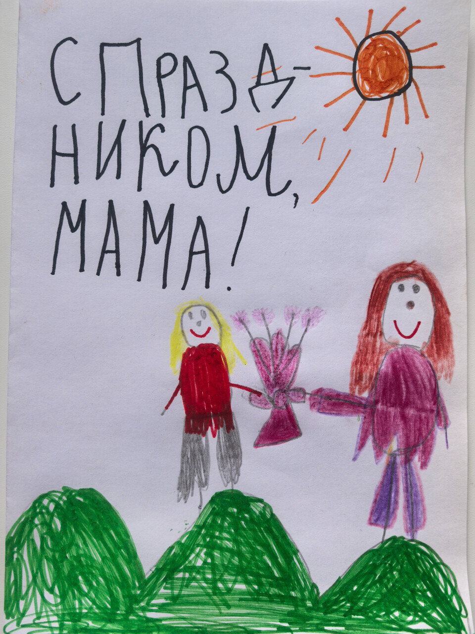 Моя мама лучшая на свете! Я очень сильно ее люблю и этот подарок для нее! На рисунке я дарю мамочке букет цветов и поздравляю с наступающим праздником "День мам". А когда я вырасту, то обязательно буду радовать свою маму настоящими букетами, любить, ценить и уважать. Спасибо, мамуличка, за всё!