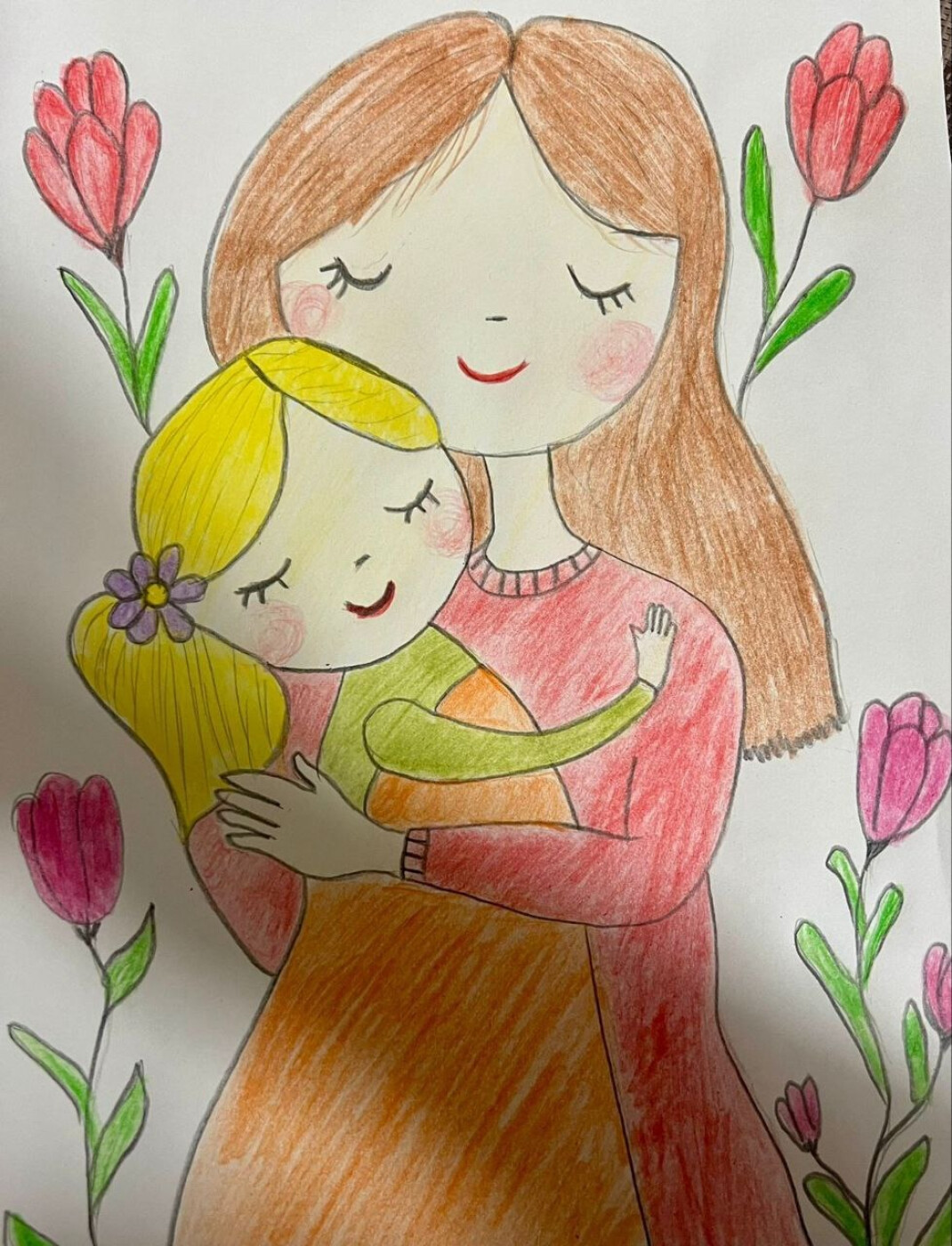 "Лучшая мама на свете!". Я назвала свой рисунок именно так, потому что моя мама самая лучшая, самая добрая, самая красивая. У меня есть два брата. Маминой любви хватает на всех одинаково. Мы ее тоже очень сильно любим и хотим, чтобы она никогда не болела, чтобы ее глаза всегда светились от радости. Мама - наш друг и самый важный человек в жизни. Мы ее никогда не обидим. Наша любовь к маме безгранична!