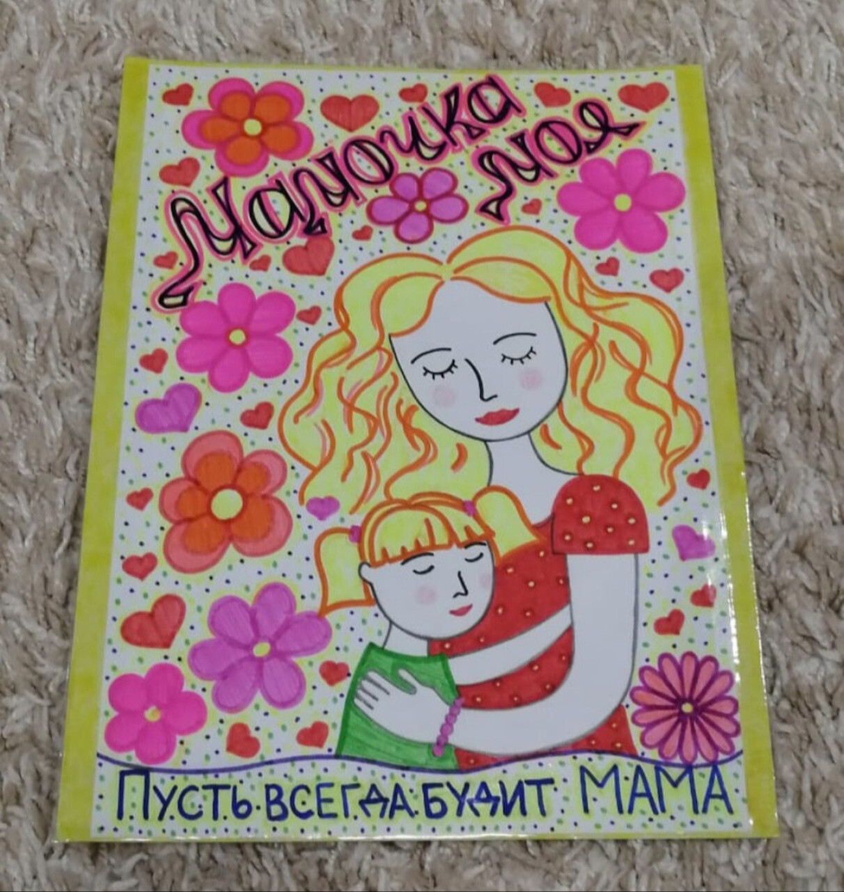 Рисунок ко дню матери выполнен карандашами и фломастерами