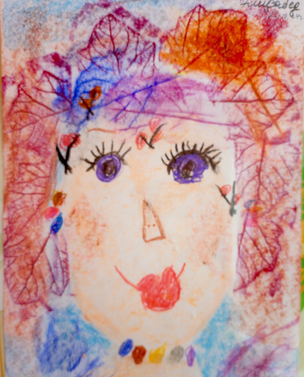 Портрет мамы выполнен мелками.