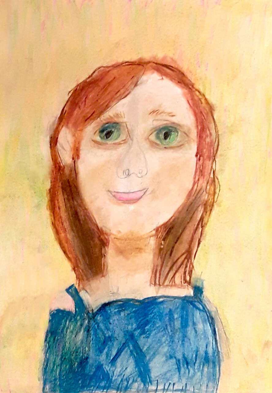 Портрет очень счастливой мамы выполненный сухой пастелью с использованием фиксатива