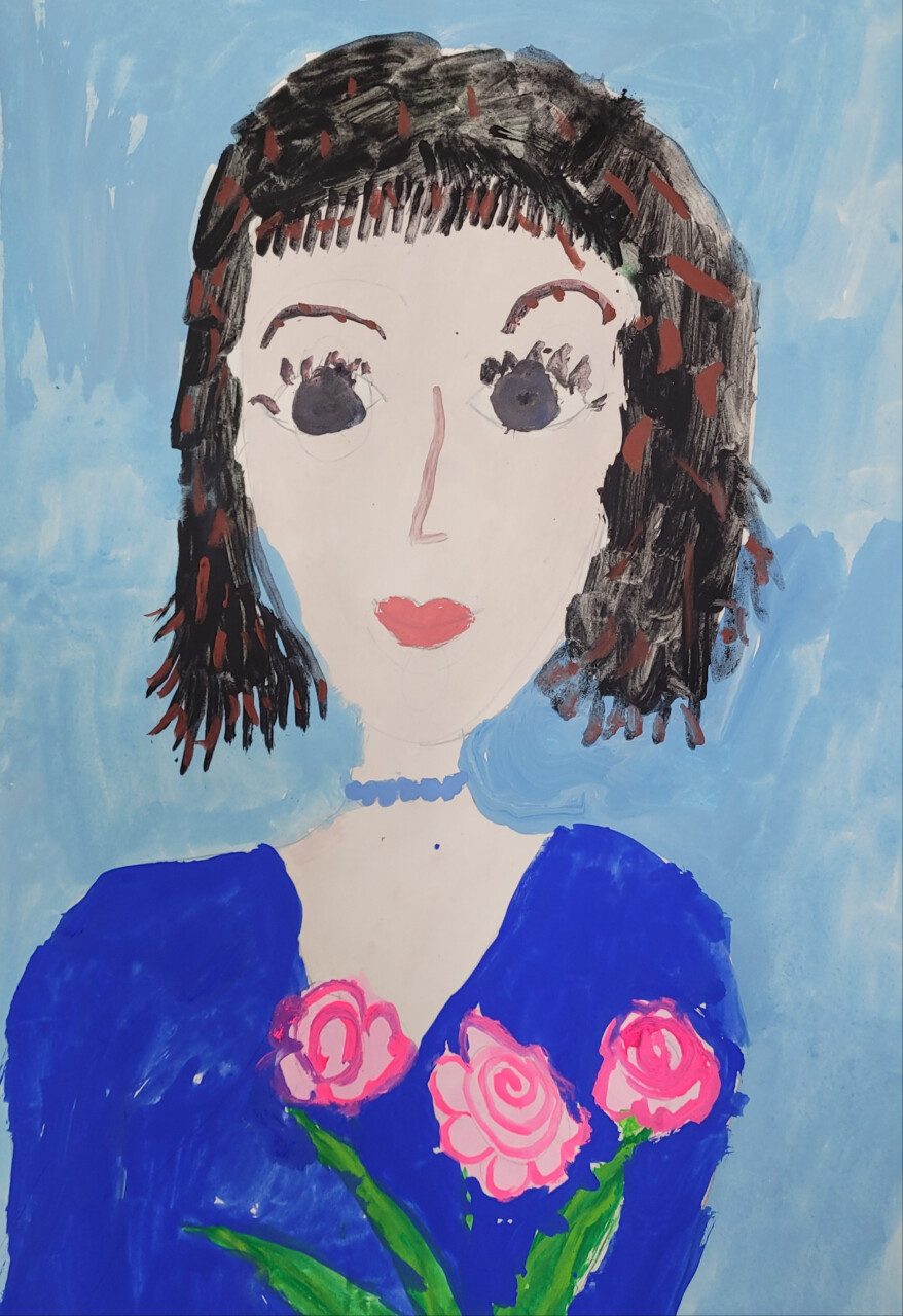 Рисунок "Моя мама" выполнен в технике живопись. Краски - гуашь.
