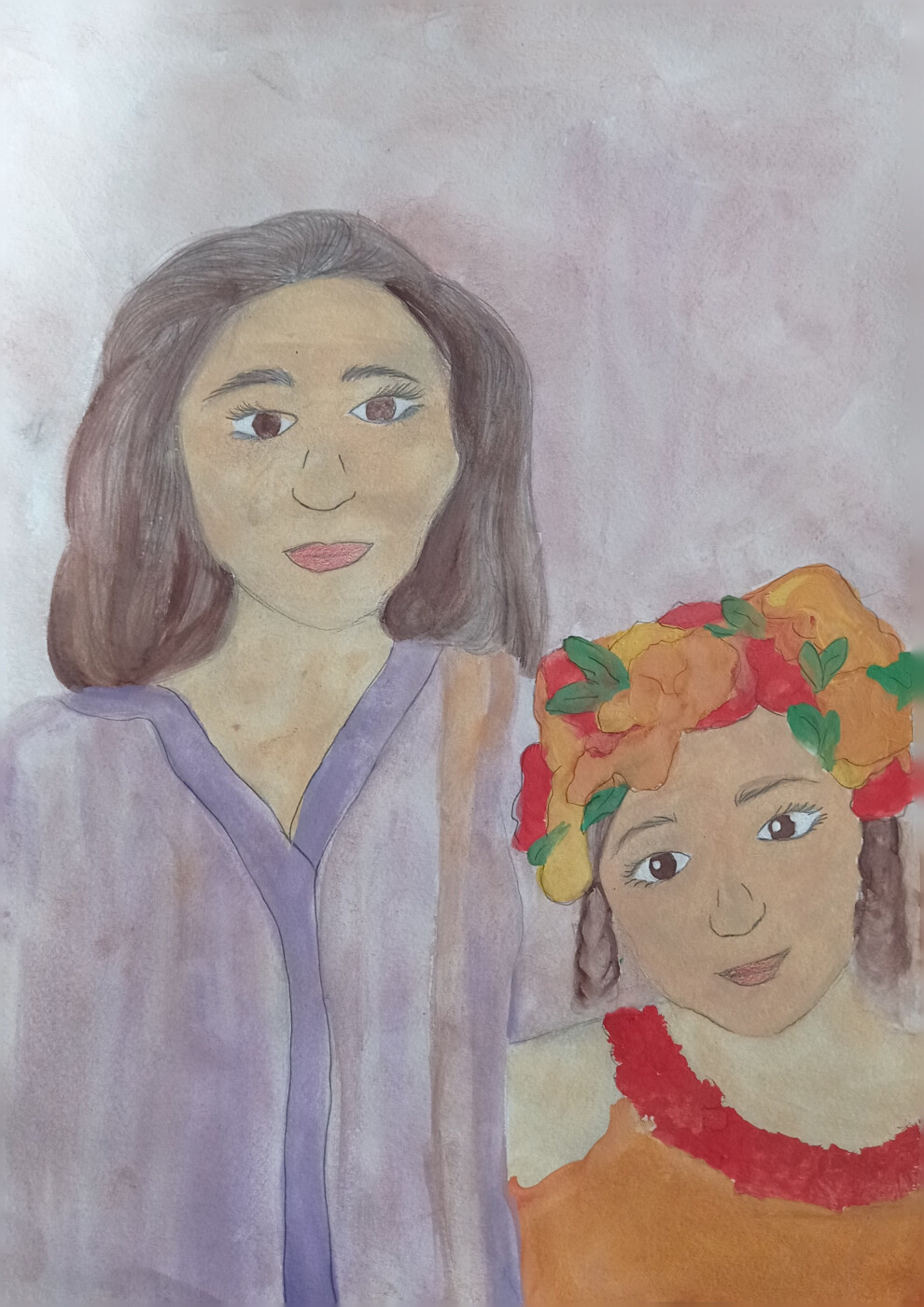Мы с мамой на конкурсе, где я выступала в составе ансамбля народного танца.