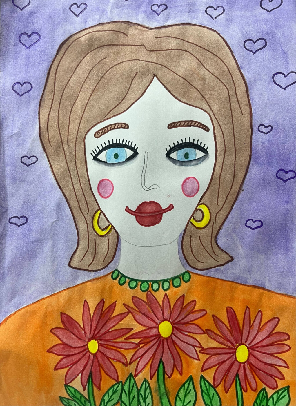 Портрет своей любимой мамы Нины создала маленькая художница, девятилетняя девочка, вложив в каждую линию сердца и теплоты. Простота и непосредственность детского восприятия позволяют увидеть настоящую красоту и доброту, которые излучают глаза и улыбка мамы. Нежные краски передают атмосферу семейного счастья и гармонии, а выразительные черты лица раскрывают индивидуальность и внутреннюю силу женщины.