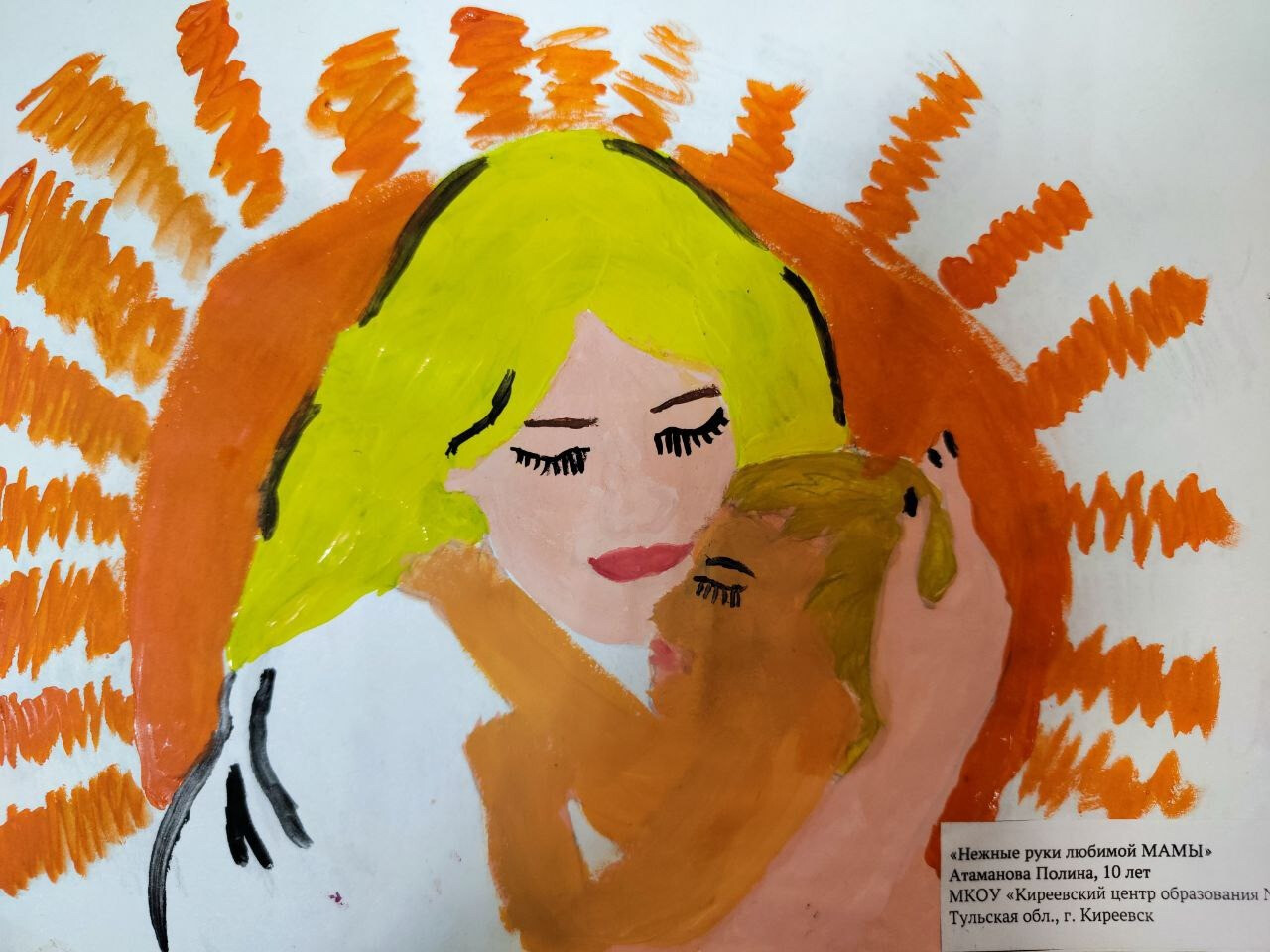 На рисунке "Нежные руки любимой МАМЫ!" Атамановой Полины изображена трогательная сцена материнской любви.