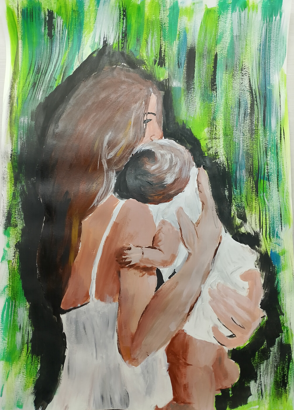 Мать прижимается к последнему лучику света во тьме.