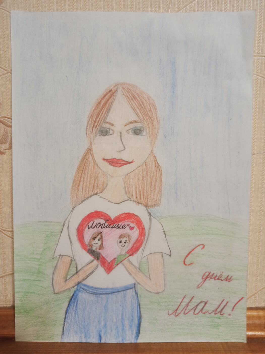 - Мой рисунок - это моя благодарность маме, ведь она для меня - всё! Еë слова всегда меня поддерживают, когда мне тяжело. Мама всегда готова прийти на помощь. Даже когда мы не согласны друг с другом, я знаю, что она любит меня. Мама- самое дорогое, что у меня есть!