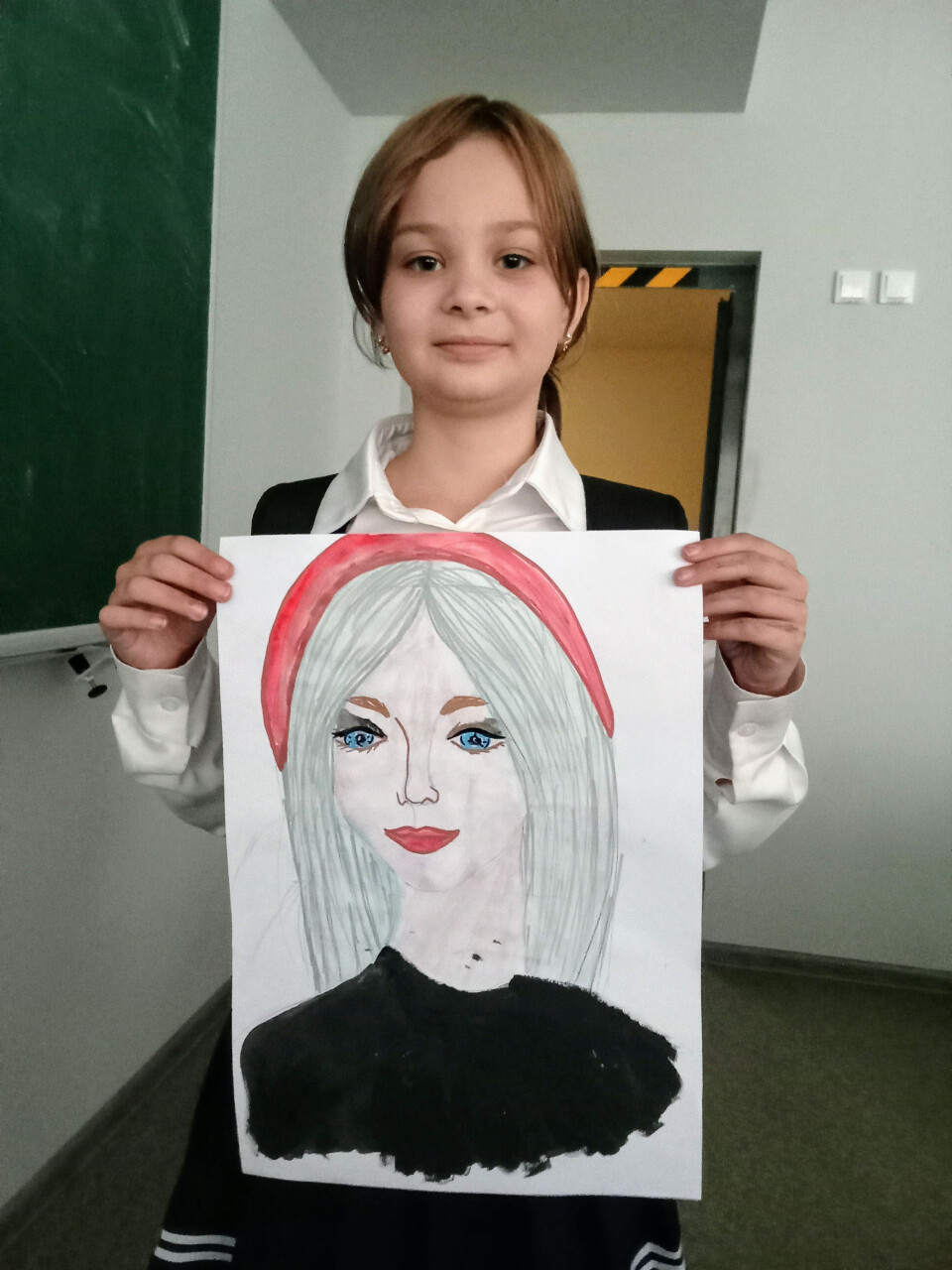 К празднику День матери я нарисовала портрет мамы. Пользовалась её фотографией. Рисунок выполнен красками - гуашь