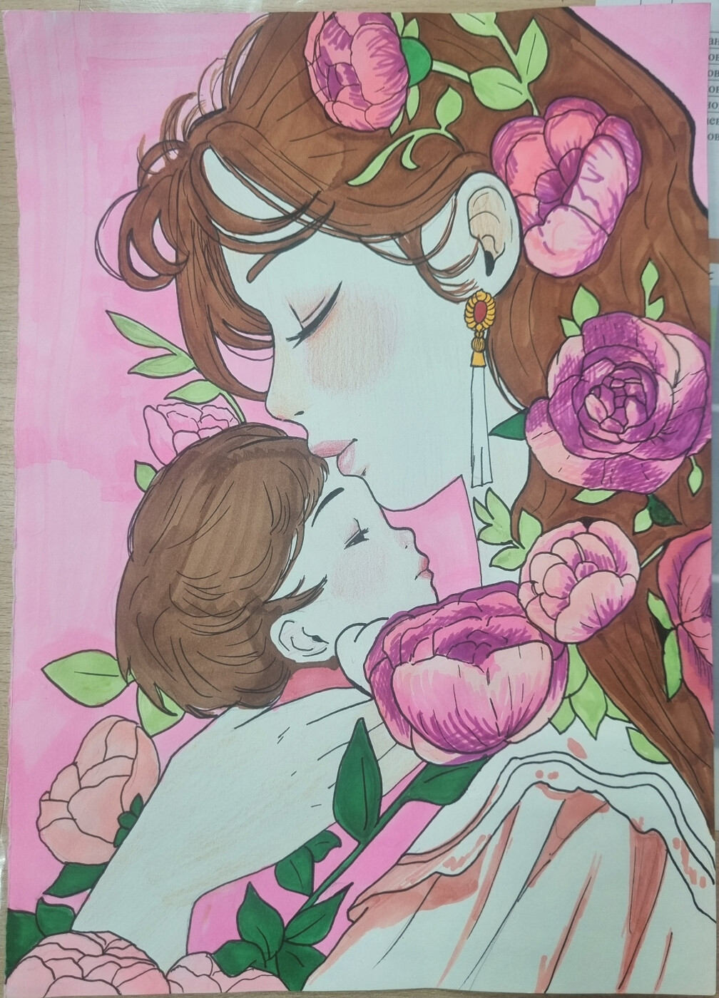 Шалова Ясина Замировна, ученица 4 класса МКОУ "СОШ 2 им.Героя РФ Т.М.Тамазова с.Карагач ". Преподаватель:Танова Мадина Хаутиевна . На этом рисунке, я хотела показать вечную любовь матери и ребёнка.