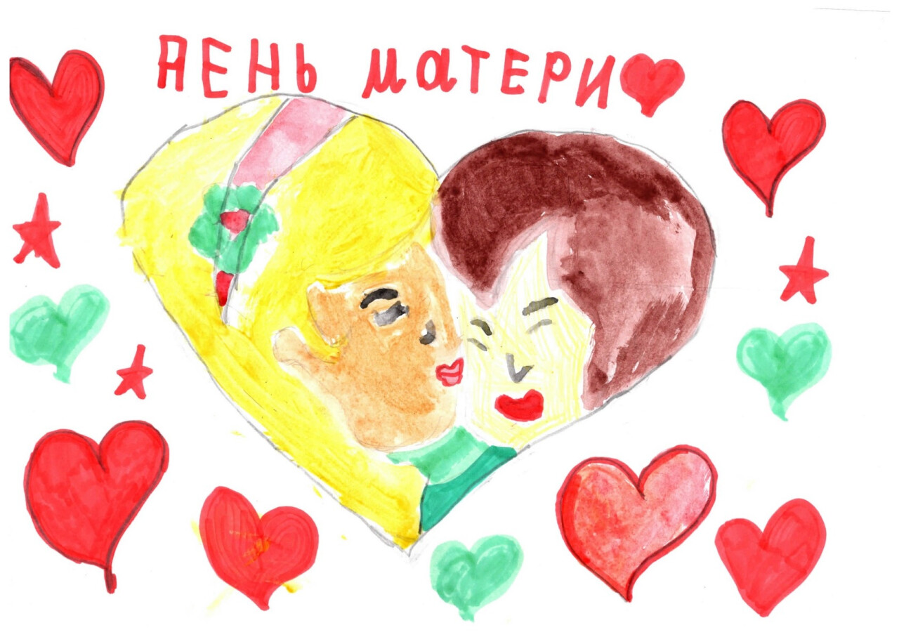 Конкурсная работа Добриевой Ясмины ученицы 2 класса. На рисунке изображены счатливые мама и дочь.