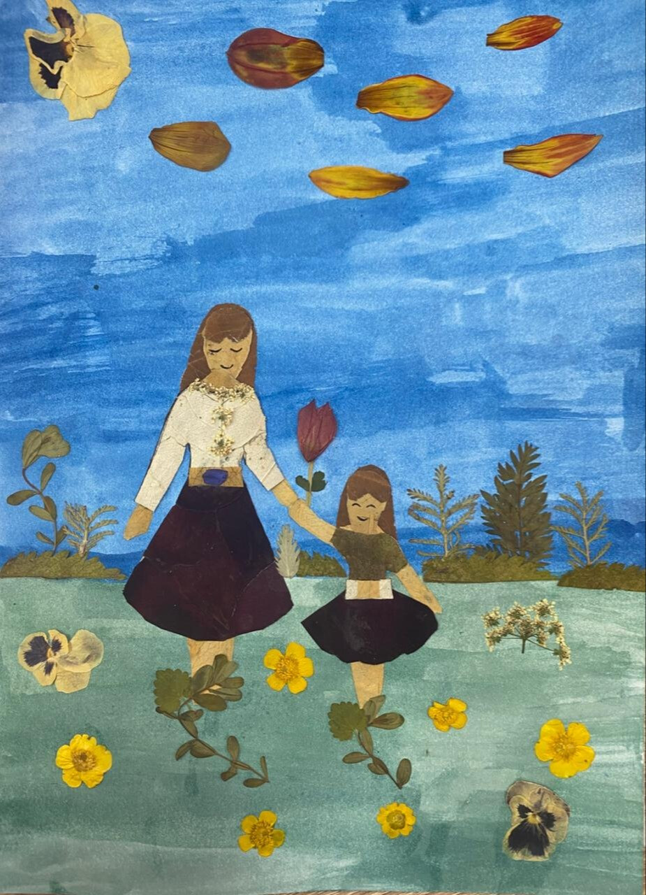 Работа выполнена в технике плоскостной флористики (флористический рисунок)