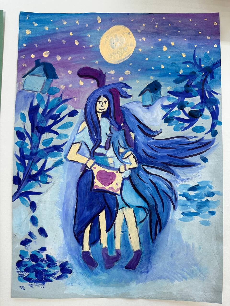 Этот портрет — попытка передать ту нежность и тепло, которыми мама согревает нашу семью. Она — мой ангел-хранитель.