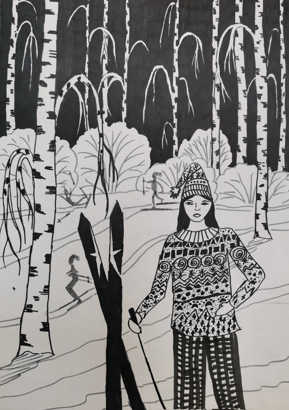 Работа выполнена фломастером на бумаге формата А3