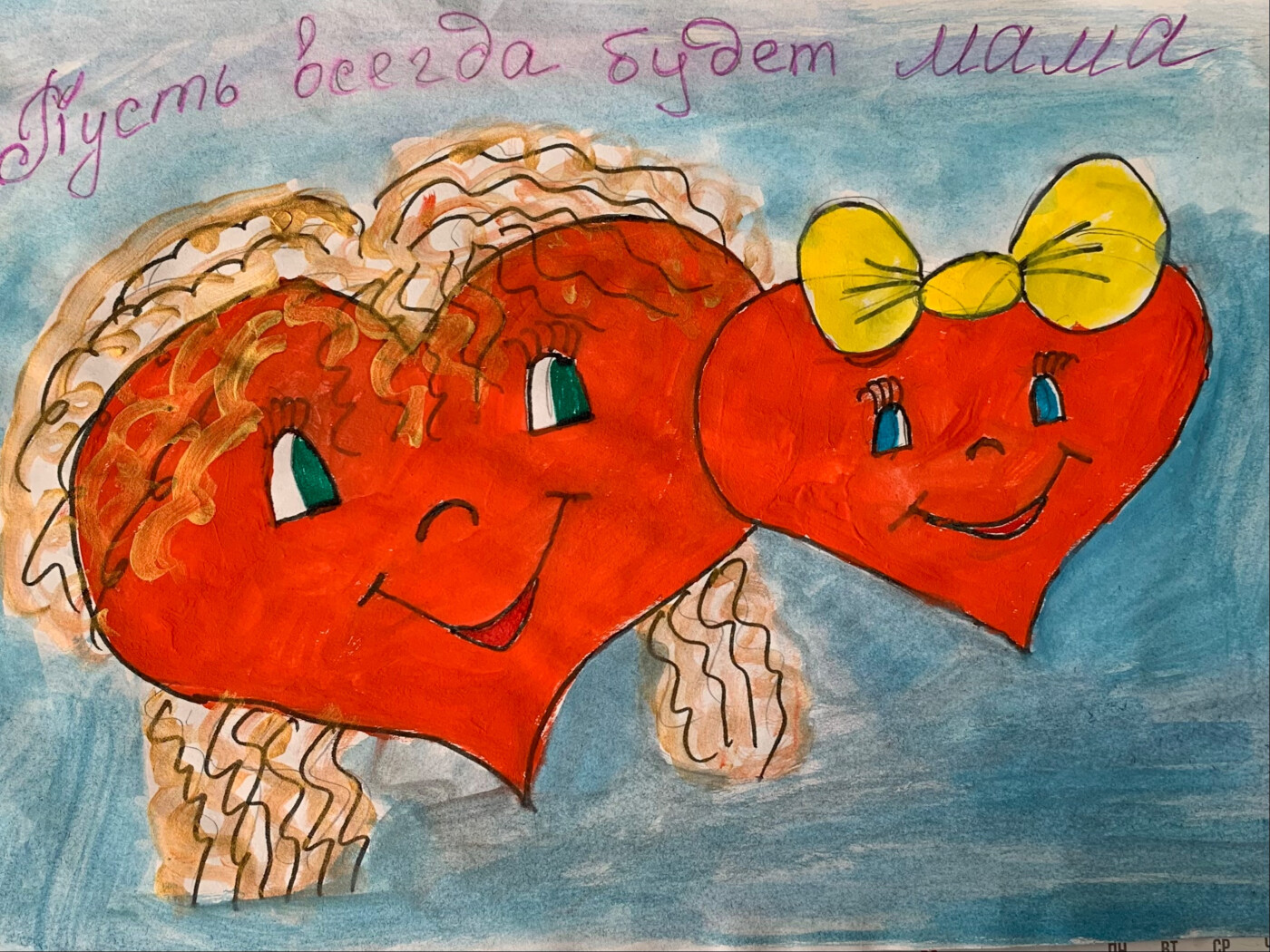 Лада нарисовала маму и себя в виде сердца, ведь любовь мамы это самое ценное и бесконечное в нашей жизни