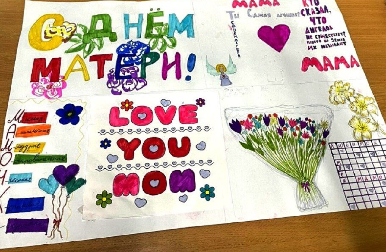 Я решала сделать плакат-рисунок,чтобы можно было его повесить в любом месте, для поздравления мам!