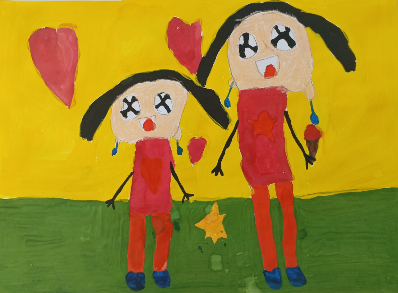 В работе ребёнок показывает внешнюю похожесть с мамой