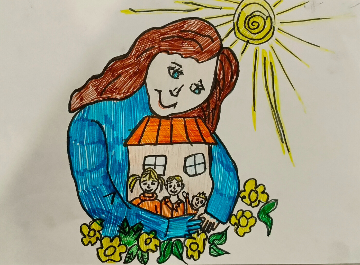 Рисунок выполняет в смешанной технике. При выполнении работы использовались цветные карандаши и фломастеры.