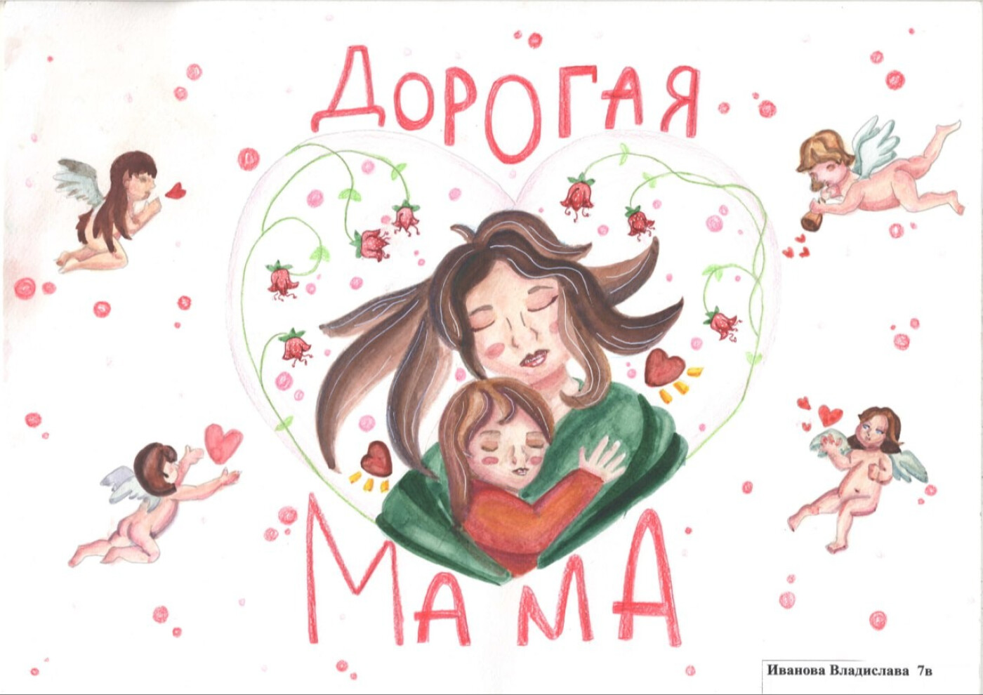 Своим рисунком я передала как сильно меня любит мама, и я люблю её. Безусловная мамина любовь.