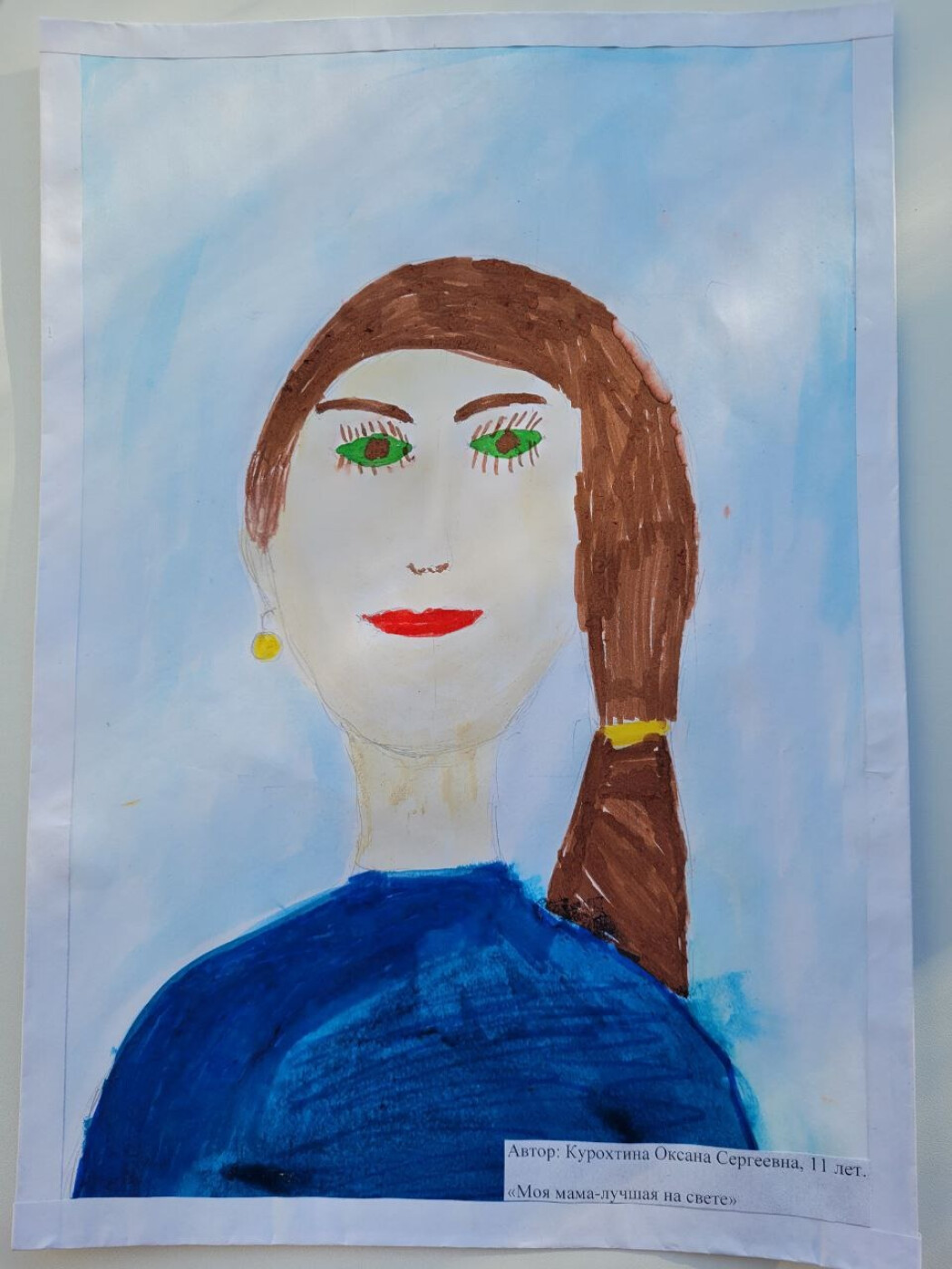 На моем рисунке – моя мама. Я нарисовала ее такой, какой вижу каждый день, когда она улыбается.
