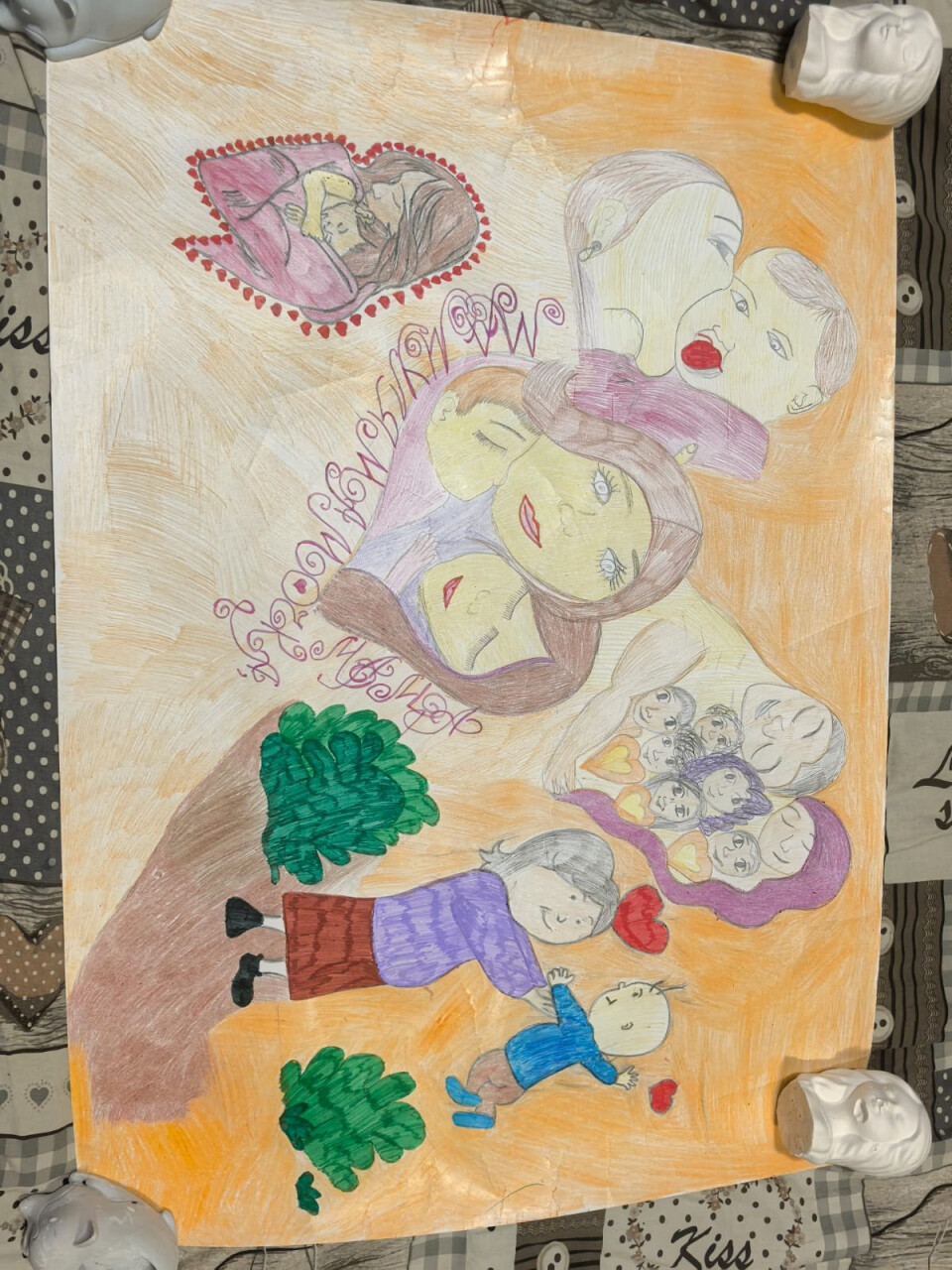 На этом рисунке хочу, изобразить мое отношение к моей любимой маме. Поздравить ее с наступающим днем матери. Мама я тебя люблю.