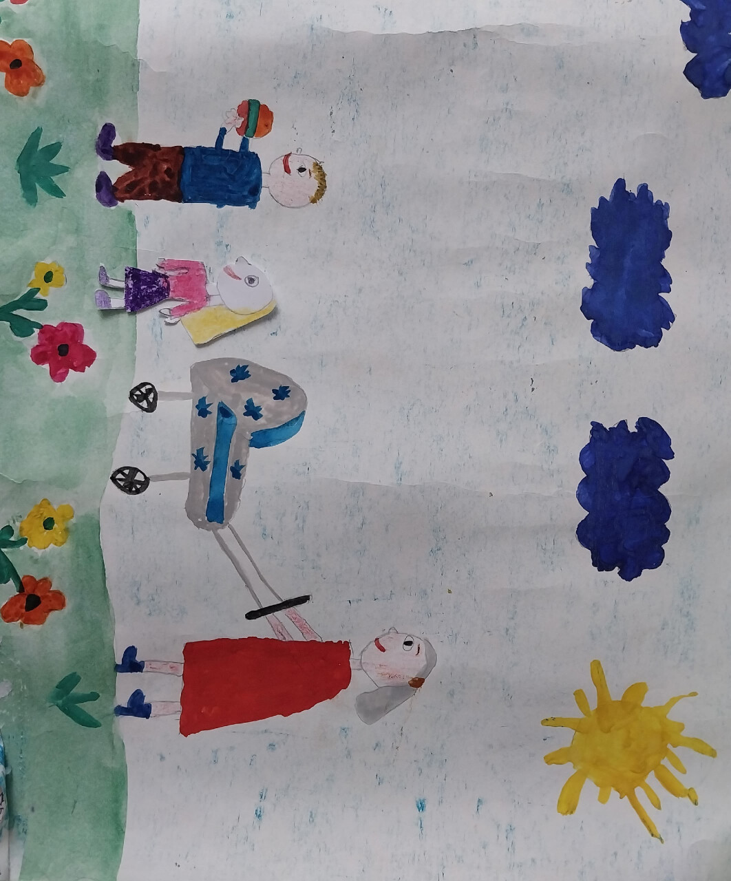 Я нарисовала свою семью: маму, братика, сестричку и себя.