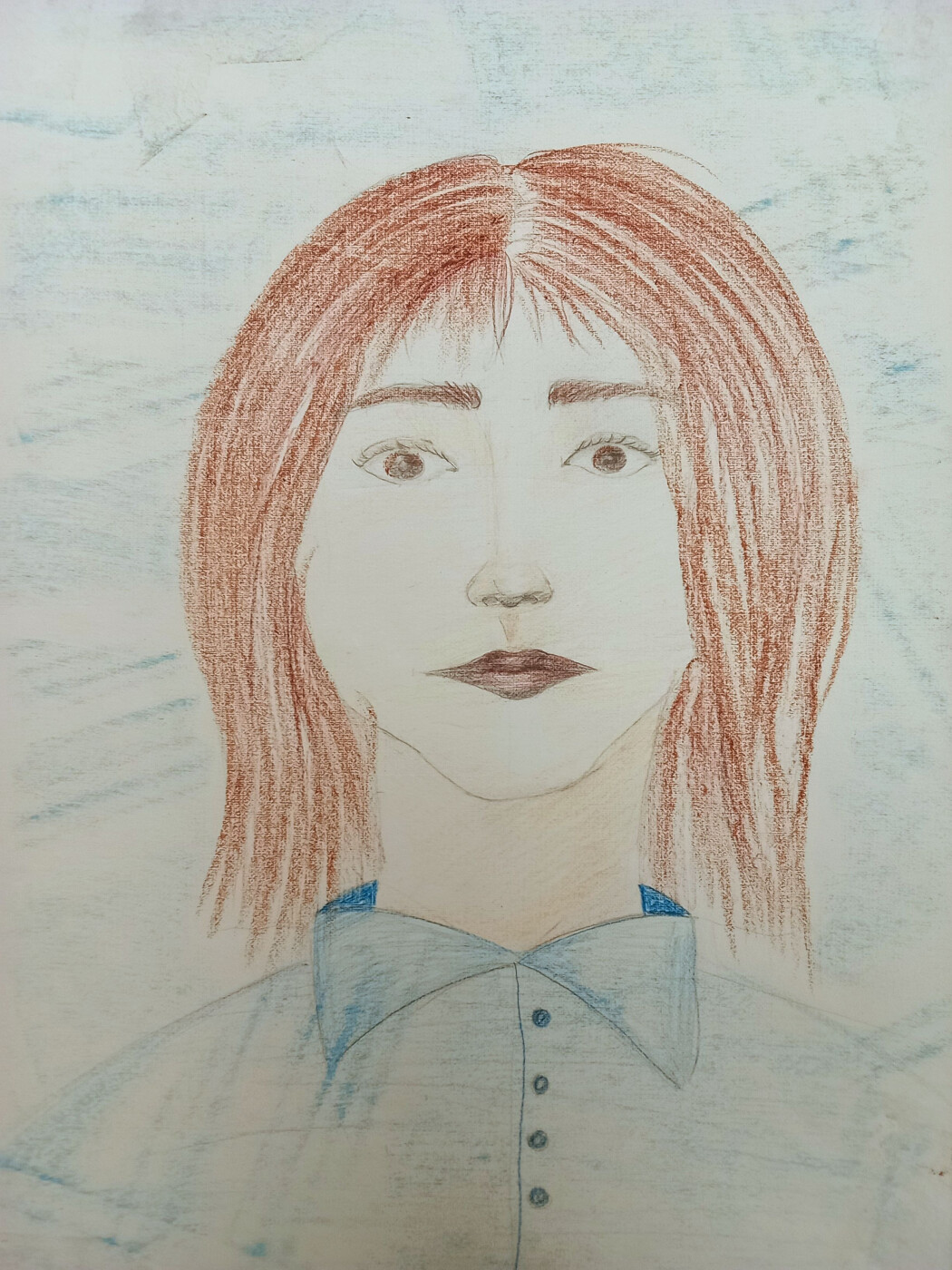 Портрет выполнен на листе А - 3. Графическими материалами - цветными карандашами