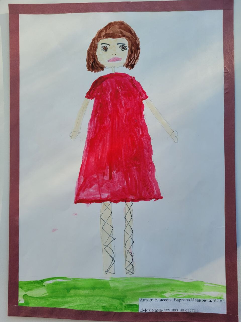 На моем рисунке – моя мама. Я нарисовала ее такой, какой вижу каждый день, когда она улыбается. Она стоит в центре, и вокруг нее – яркое, теплое солнце. Это не просто солнце, это символ того, как мама освещает мою жизнь, делает ее радостной и полной света