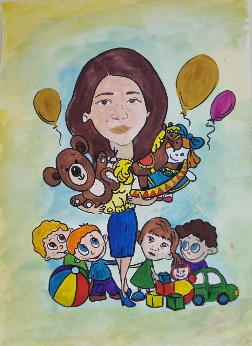 Мама работает в детском саду, и её доброта, терпение и мудрость помогают малышам расти и развиваться. Она умеет найти подход к каждому ребёнку, создавая атмосферу любви и заботы. Благодаря её профессионализму и искреннему желанию помочь детям, многие из них чувствуют себя в садике как дома.