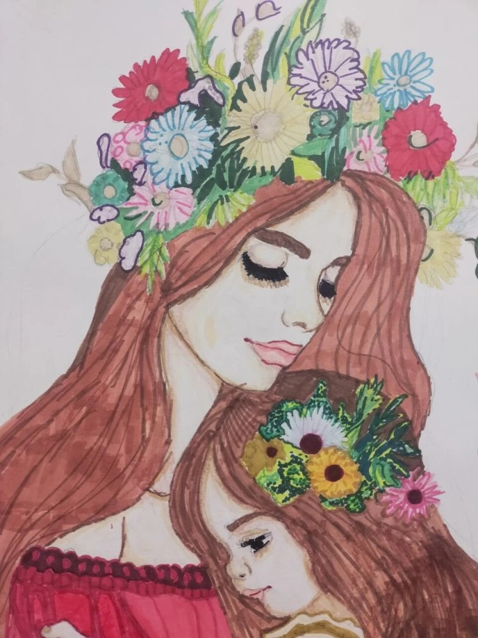 Лиза очень любит рисовать с ранних лет. Она пробует себя в различных техниках рисования. Тема любви к маме её очень тронула и она решила принять участие в этом конкурсе.