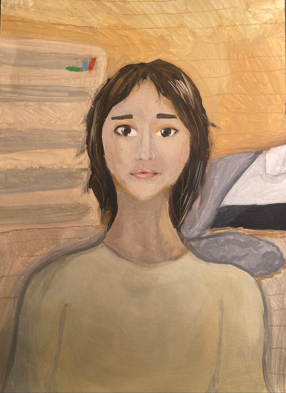 На моей картине я попыталась изобразить маму не в момент работы, а в тот миг, когда она откладывает все дела и смотрит на меня. Её глаза – это центр всей картины. В их отражении я нарисовала нашу семью, наш дом, наши с ней смешные шутки. А вокруг – лёгкие, воздушные краски, как будто её доброта разливается по всему миру и делает его светлее и безопаснее.