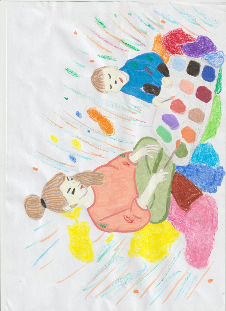 Ребёнок живёт с бабушкой. Маму видит очень редко. Скучает. Вспомнил. Когда мама приезжала, подарила краски. Как было весело. Сидели на полу и вместе рисовали.