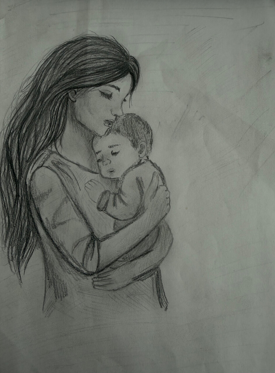 На этом рисунке изображен самый трогательный момент — объятия мамы и её малыша. В этом простом, но глубоком изображении заключена вся сила материнской любви. Объятия — это не просто физический контакт; это символ тепла, безопасности и безусловной поддержки.