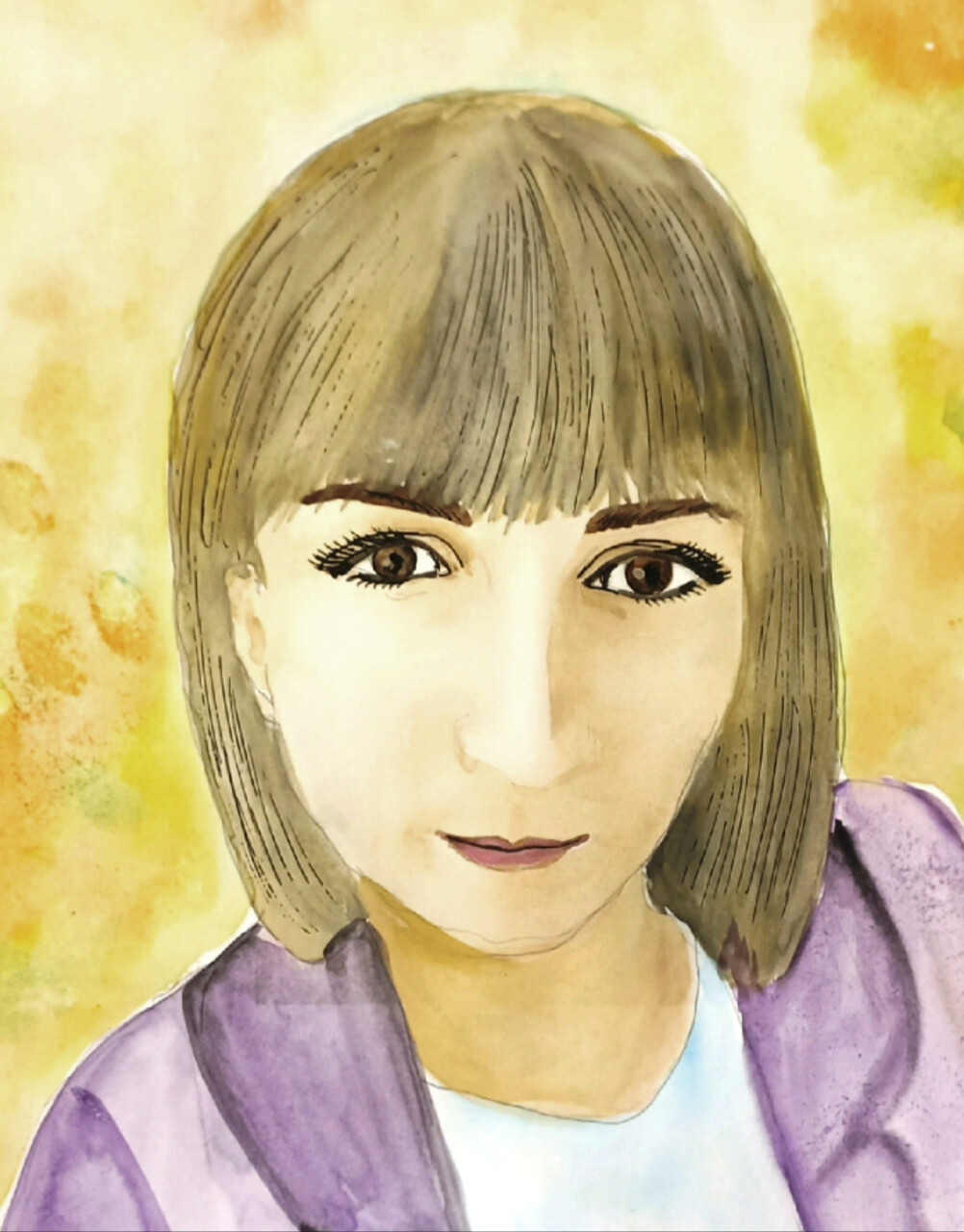 "Портрет мамы" работа выполнена акварелью, посвящена маме. Моя мама, она как солнышко, я хочу, чтобы она всегда была рядом. Я очень люблю свою мамочку.