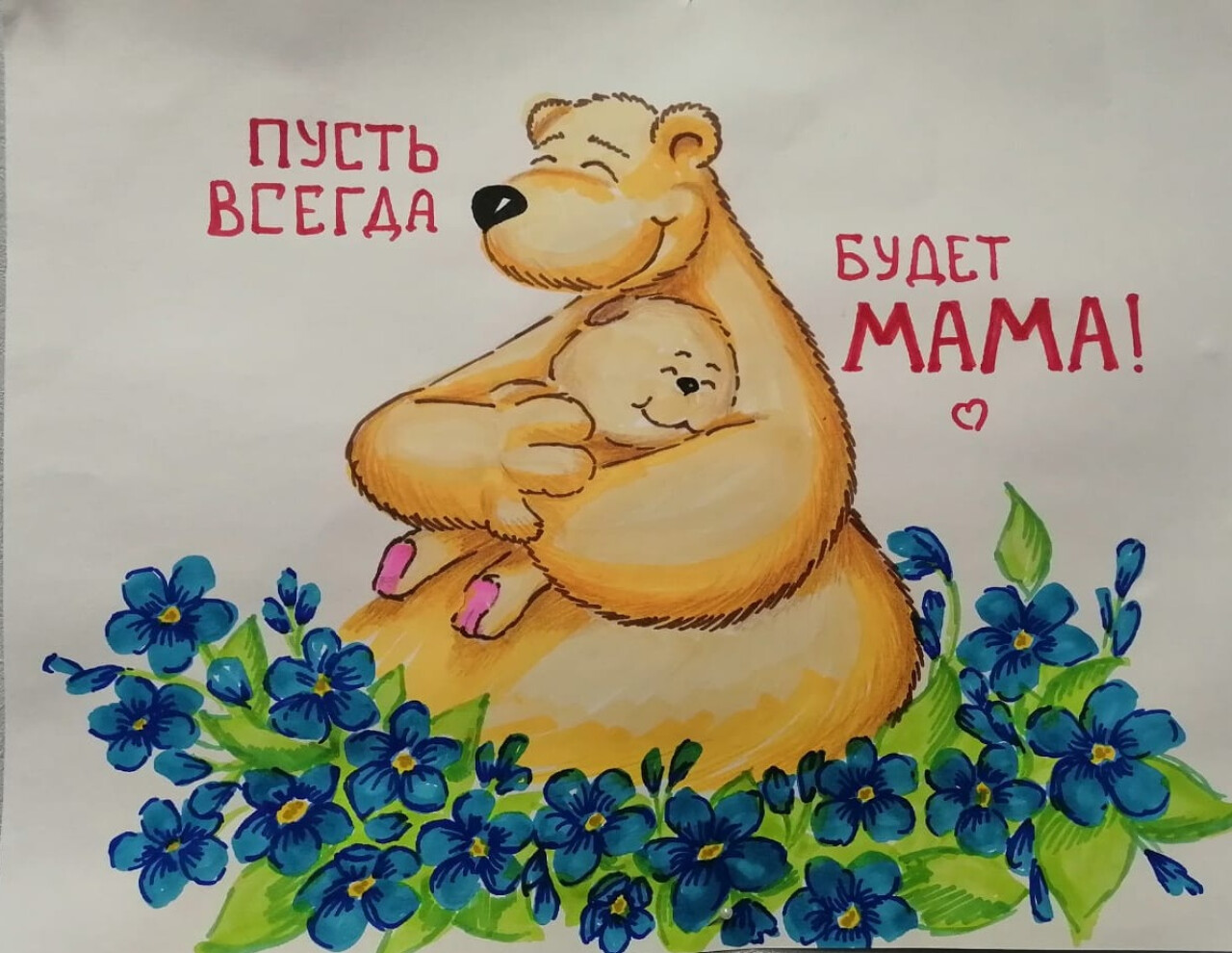 Рисунок мама медведь со своим медвежонком "Пусть всегда будет мама!"