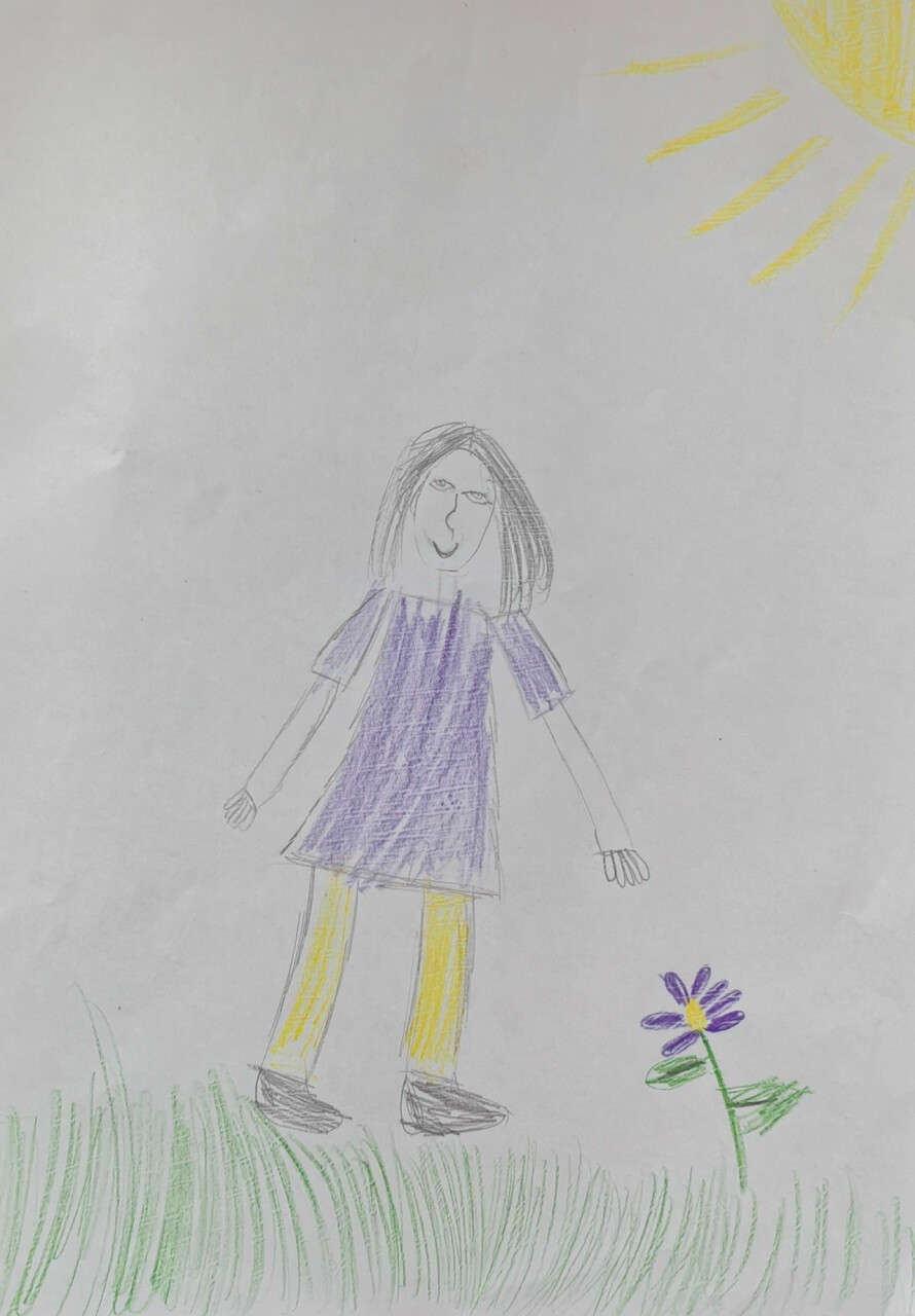 Это рисунок моей любимой мамы. Она самая лучшая: добрая, внимательная, заботливая. Иногда ей бывает не легко, потому что у нее пять детей, но она всегда улыбается.